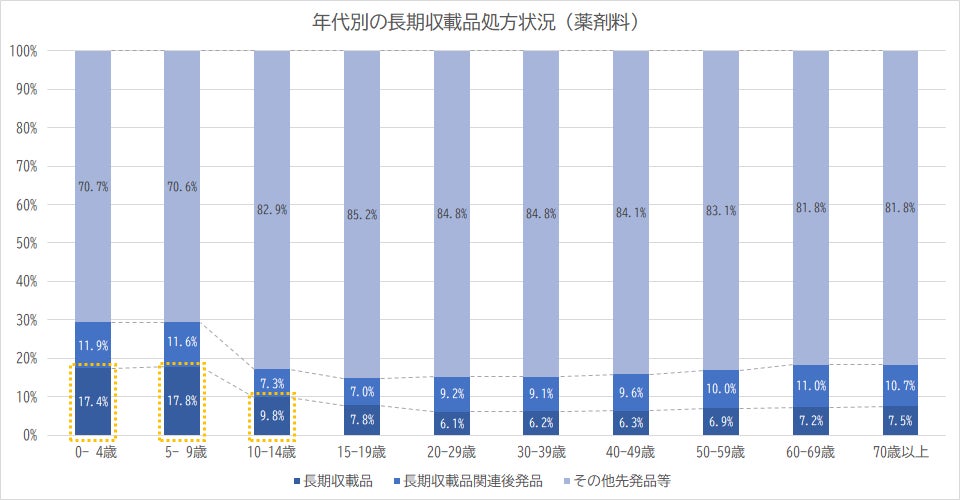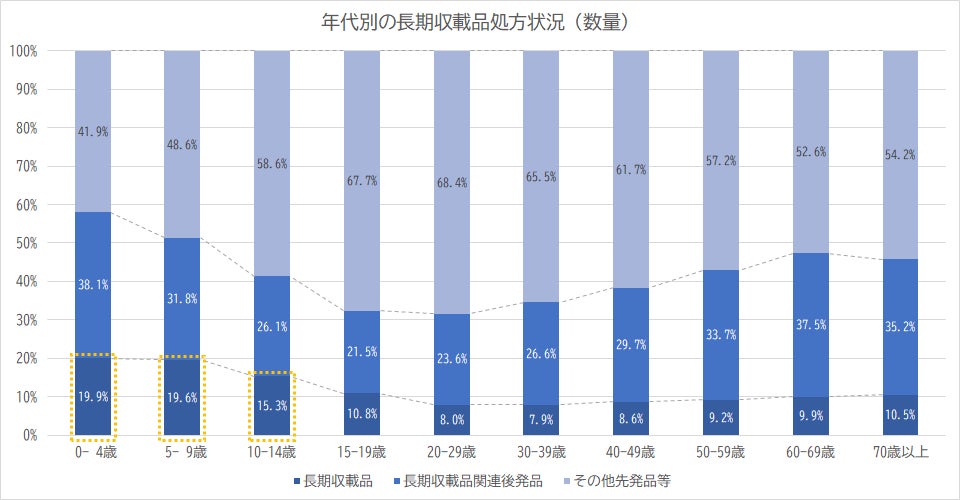 年代別に見ると15歳未満での長期収載品の使用率が高くなっていることが確認できました。(図4)