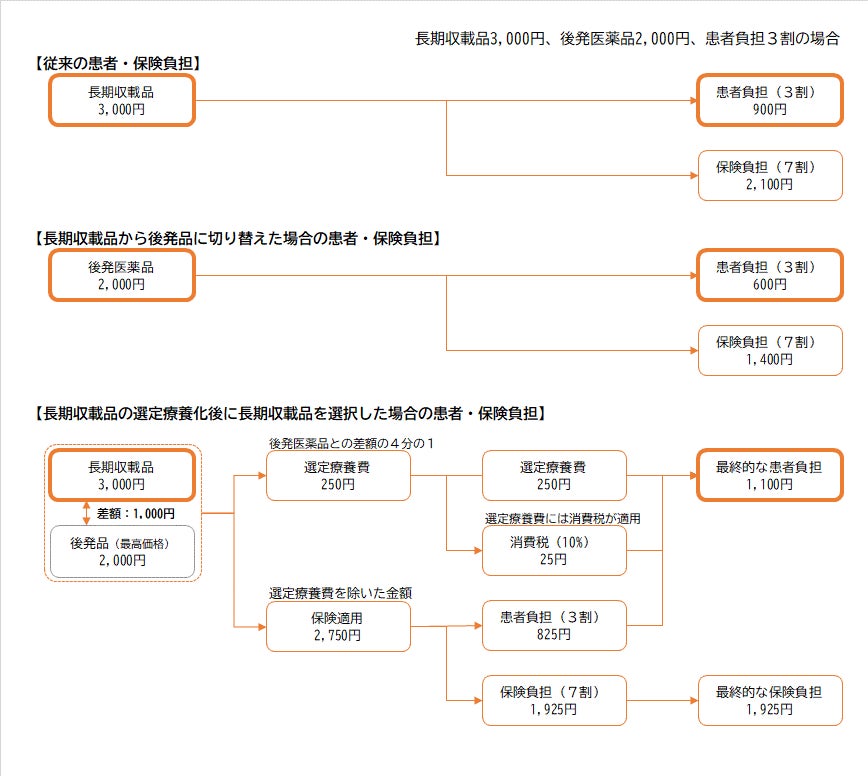 参考資料:厚生労働省 後発医薬品のある先発医薬品(長期収載品)の選定療養について(https://www.mhlw.go.jp/stf/newpage_39830.html)