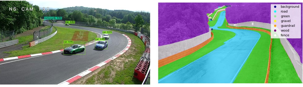 (画像1(左))「ノルドシュライフェ」のコースにおけるAIによる車両などの識別映像