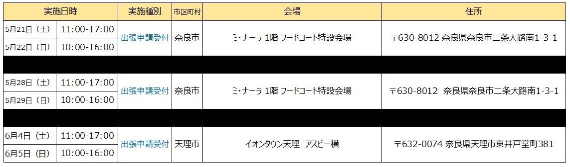 【奈良県内の追加実施会場】