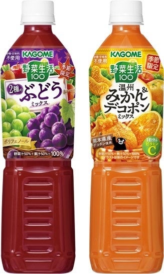 <季節限定発売>「野菜生活100 2種のぶどうミックス」 「野菜生活100 温州みかん&デコポンミックス」発売