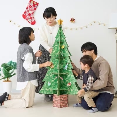 段ボール製のクリスマスツリーが作れるキットです。オーナメントは自由に絵や色を塗って飾れます。親子やファミリーで楽しみながら段ボール製のクリスマスツリーを制作できます。