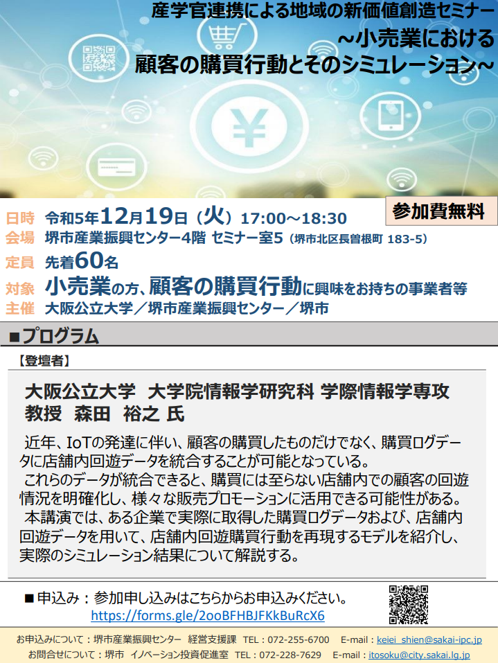 対象 小売業の方、顧客の購買行動に興味をお持ちの事業者等