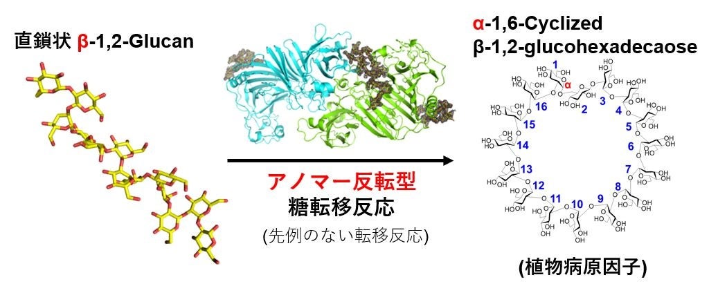 糖質加水分解酵素群の100年を超える研究の歴史の中で初めて見つかった糖転移反応 ~植物に対する病原性因子の環状糖を合成するアノマー反転型糖転移反応の発見~