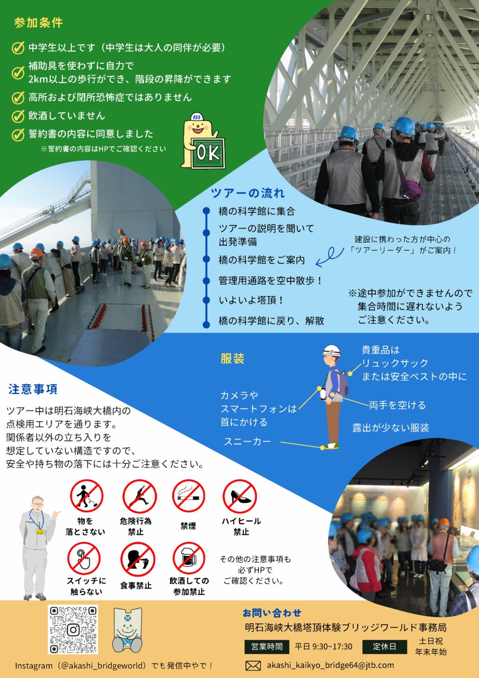 お申込前に必ず、『明石海峡大橋塔頂体験ブリッジワールド』ホームページにて、注意事項等を