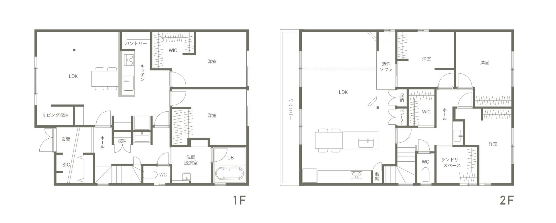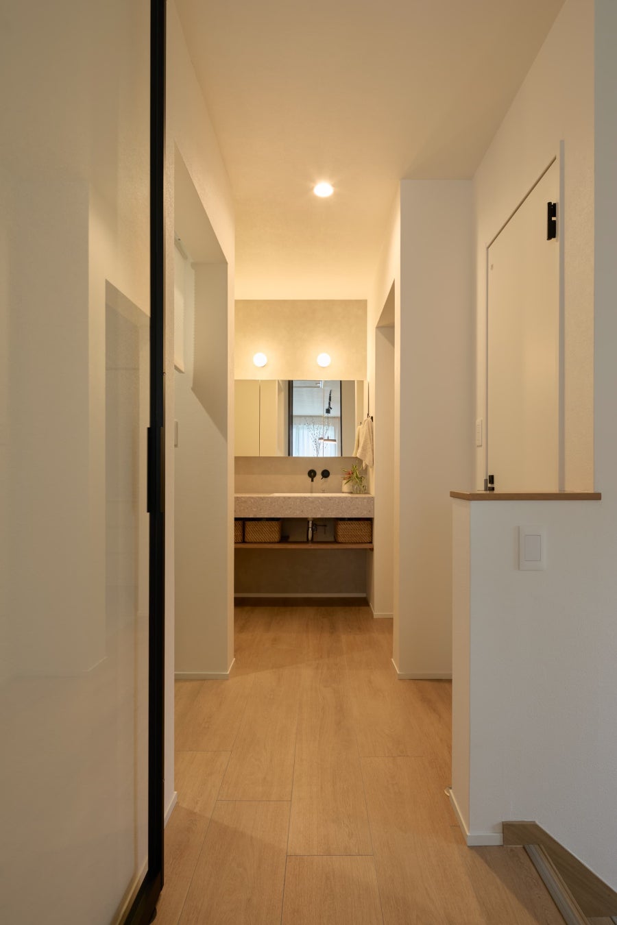 Ⅱ型キッチンからランドリー・WIC・洗面をつなぐ動線設計で、家事がスムーズに完結。毎日の負担を減らしながら、空間としてもおしゃれにまとまった“家事ラク動線”です。