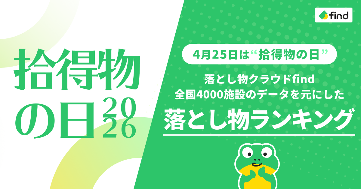 4月25日は拾得物の日!「落とし物クラウドfind」が全国4,000施設のデータを元に施設別の落とし物ランキングを発表