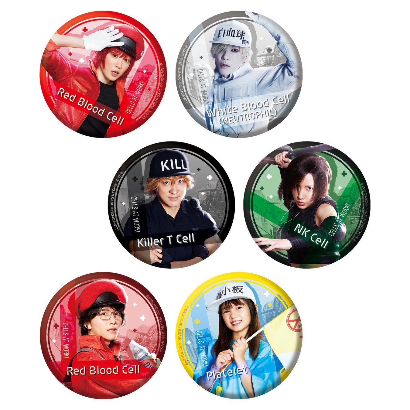 今回発売するイオンシネマオリジナル商品は、永野芽郁、佐藤健、山本耕史、仲里依紗、板垣李光人、マイカ・ピュが使用された缶バッジ(ランダム全6種)・赤血球が運ぶ酸素のダンボールをモチーフにしたピルケースとトートバッグ・白血球(好中球)を表すWBCと血小板の洋服デザインのTシャツ2種・体の中の世界と映画デザインのWクリアファイル・各キャラクターが帽子で表されたドキュメントケース・酸素ボンベをモチーフにしたマグカップ・血小板などをモチーフにしたおくすり手帳ケースの8アイテム。いずれも数量限定で販売しますので、ぜひこの機会にお買い求めください。