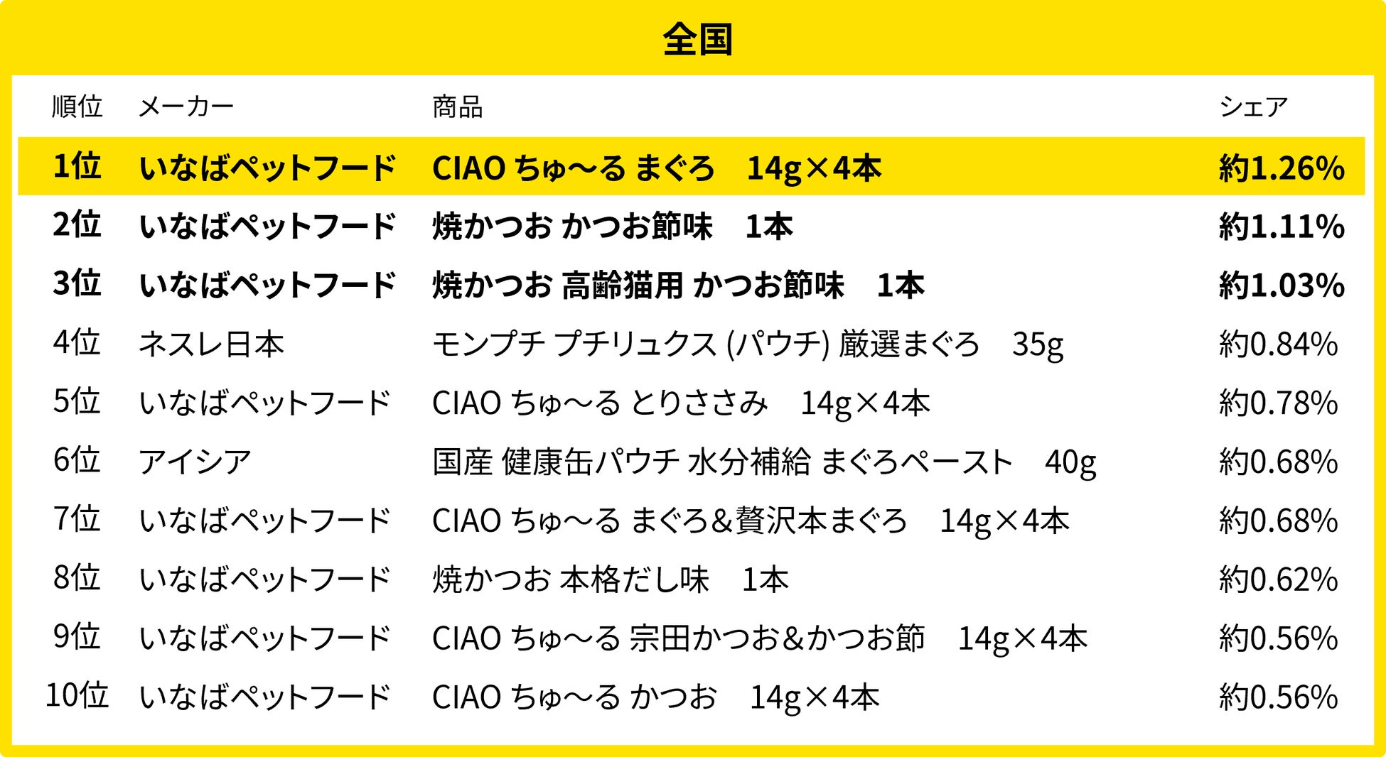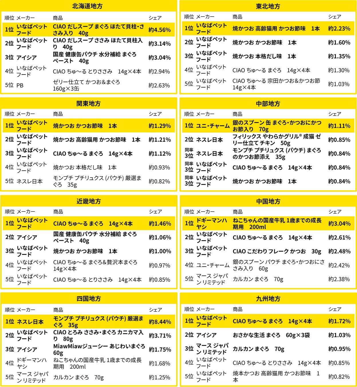 また、全国的にパウチタイプのキャットフードが大多数ランクインしていることも分かりました。
