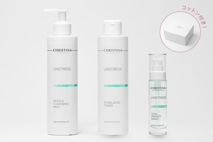クリスティーナのスキンケアを初めてお使いいただく方にもおすすめの、肌のベースを整えるセット。専用コットンとあわせて、心地よいスキンケア時間をぜひご体感ください。