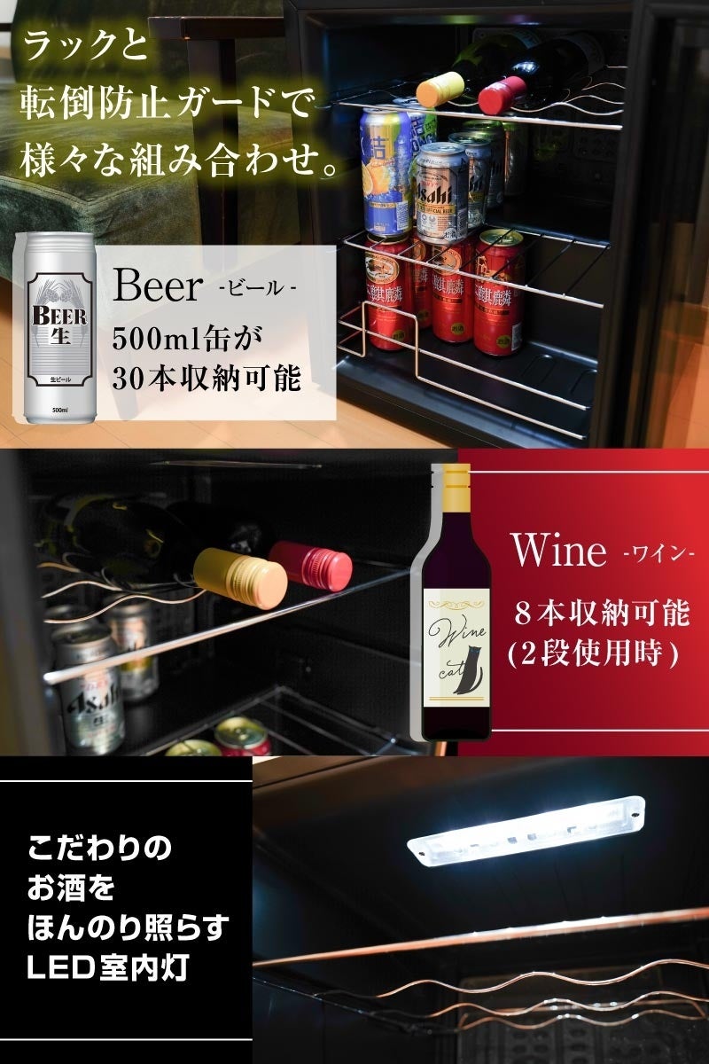 ■付属のラックをセットすればビールやワインも冷蔵できる