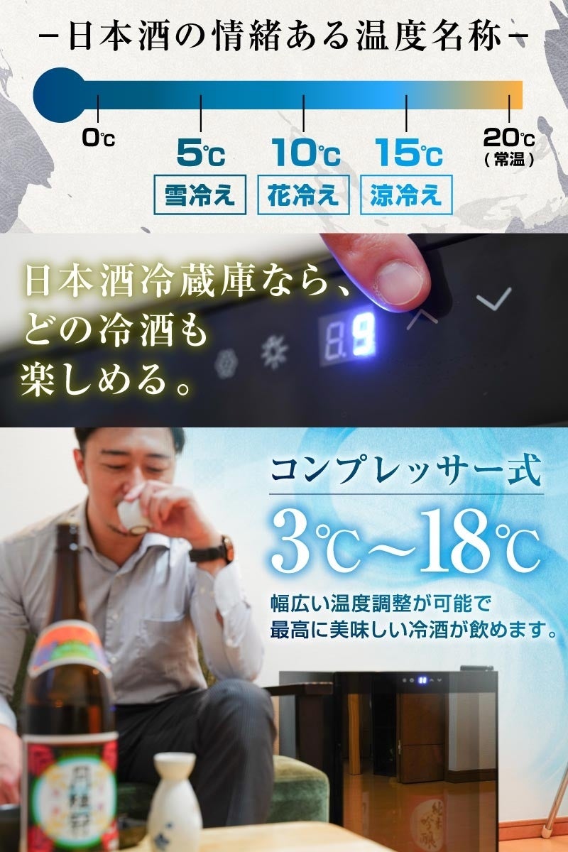 本製品は日本酒を美味しく飲むための日本酒専用冷蔵庫です。