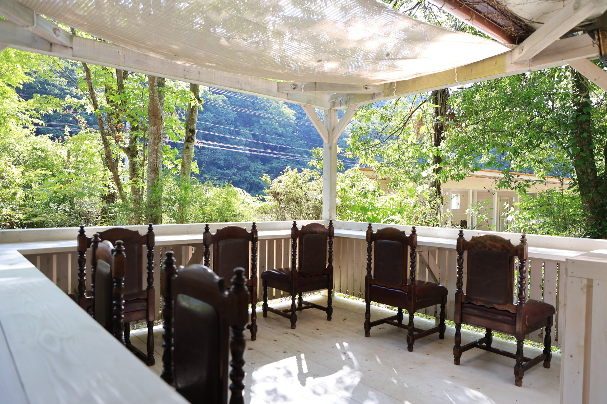 中央に位置する「セラの池」を、木々と花々が囲むガーデン「おとぎの庭」です。ミュージアムを覆う森の木々はレストランのオーナーが当時植えられたもので、できるだけその木々を活かしています。
