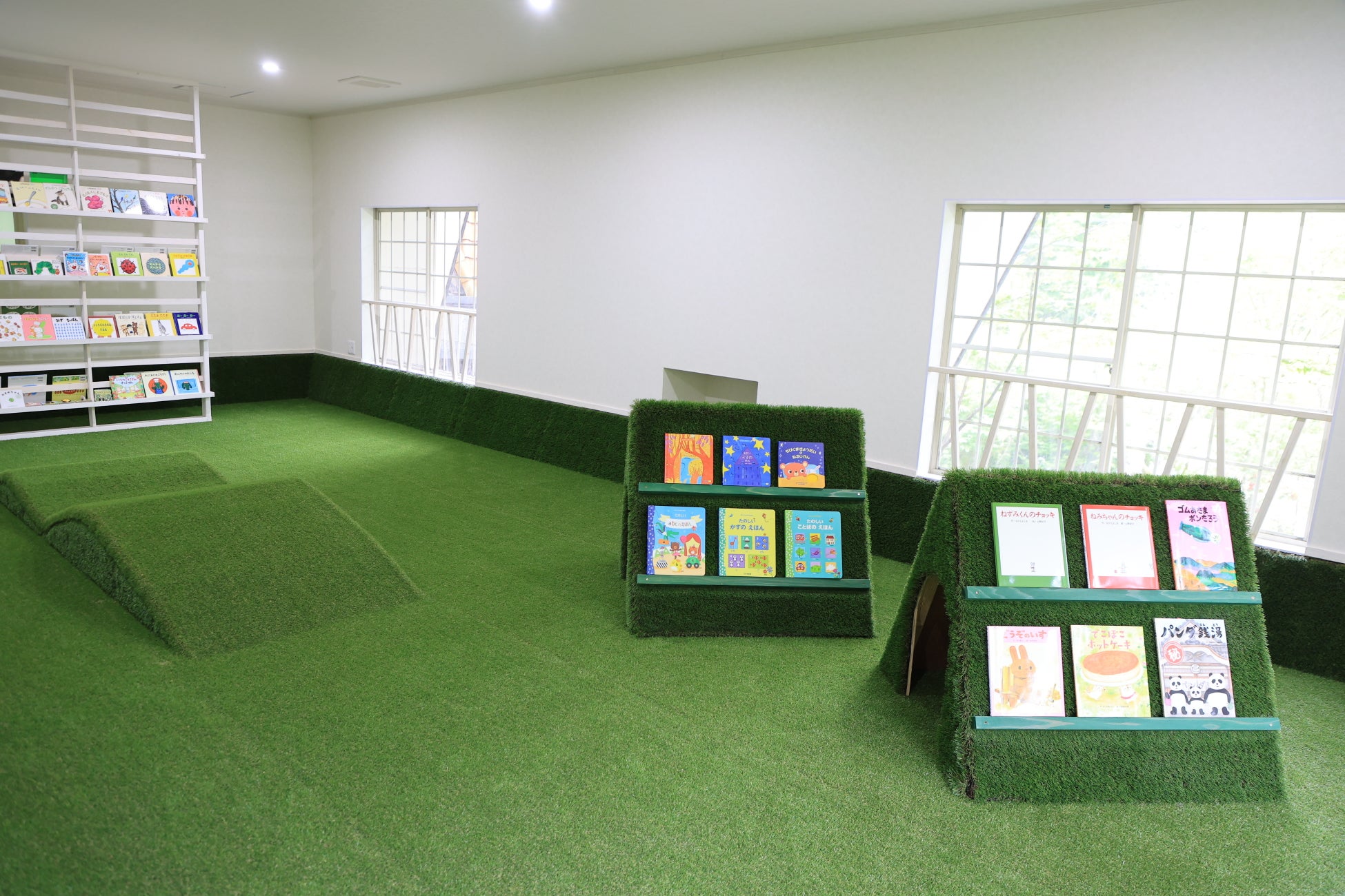子どもさんに楽しんでいただける絵本を集めた、靴を脱いで遊べるスペースです。
