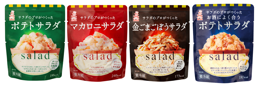 2024年4月現在、「ポテトサラダ」「マカロニサラダ」「金ごまごぼうサラダ」「お酒によく合うポテトサラダ」の4品を展開。