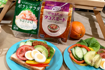 また、ピクニックにぴったりな商品として「サラダのプロがつくったサラダ」シリーズ・「のせるだけ」シリーズ、新生活を助ける簡単調理アイテムとして「バターソース」シリーズと「CANDISH® saba」をご紹介しました。