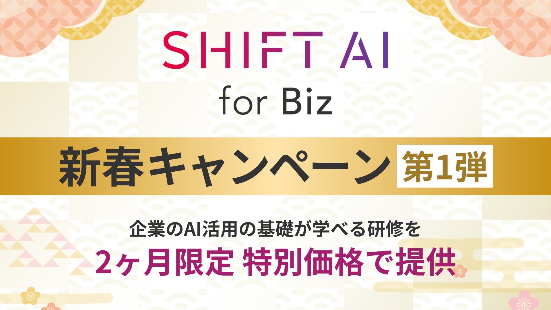 SHIFT AI、法人向けAI教育研修「SHIFT AI for Biz」新春キャンペーン第1弾!先着10社限定 特別価格でお試し可能に
