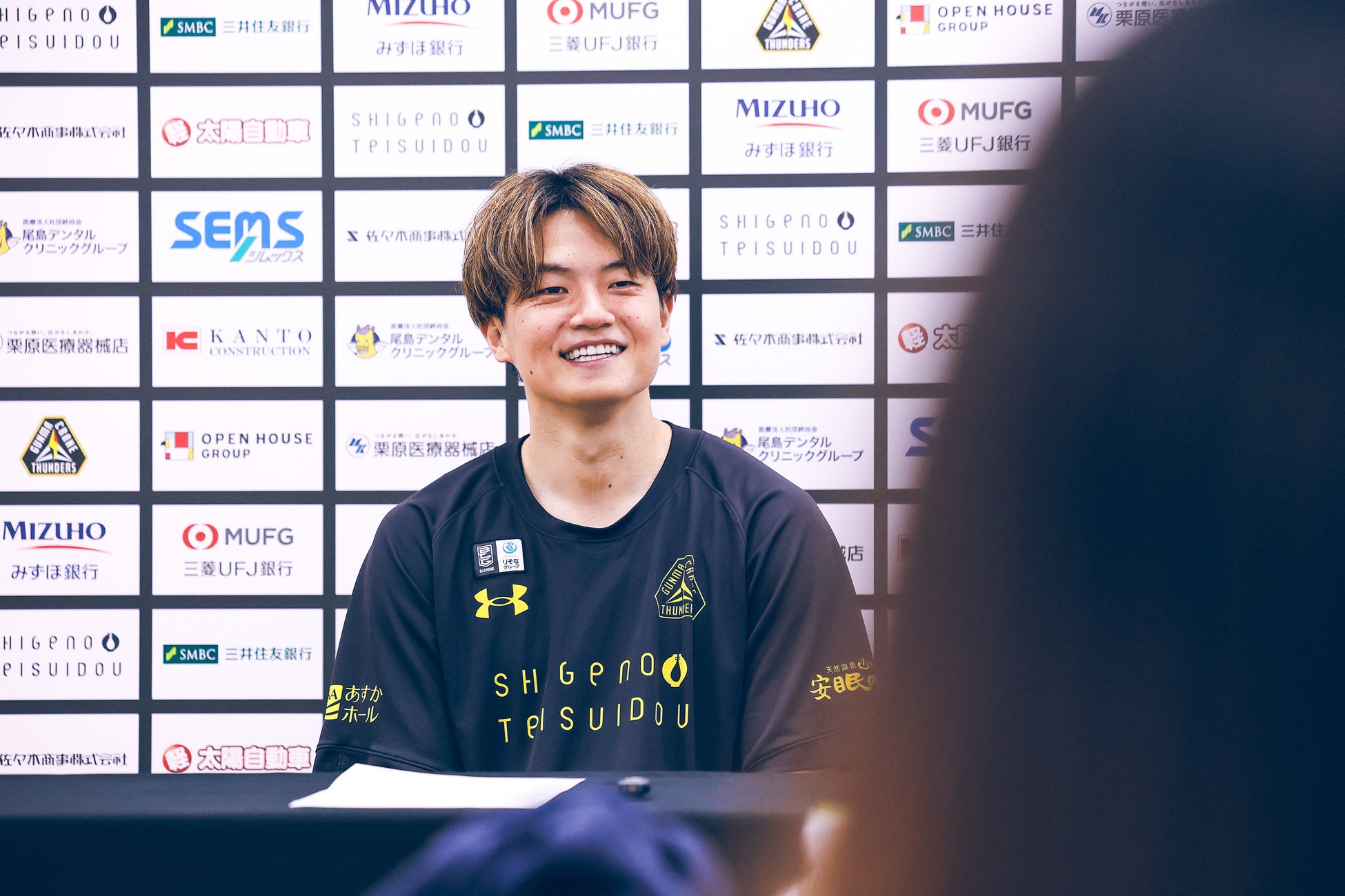 ディフェンスが最近楽しくなってきたというか、この年になって。ディフェンスをしないとプレータイムもらえないというのがやっぱり一番にあるんですけど、その中で今シーズン始まる前からディフェンスを強化したい、レベルを上げたいという思いがあってオフシーズントレーニングを始めたので、シーズン序盤は10月とかはちょっと体が動かなくて不安を持ったままやってたんですけど、最近はむしろハンドラーとかそういった選手につきたいと思うようになってきました。やっぱ僕のイメージの中ではですけど、馬場選手(長崎)とかそういった選手に付けるくらいに持っていきたいなって。びっくりさしたろかなって。バチバチに止めてっていうイメージはできています。