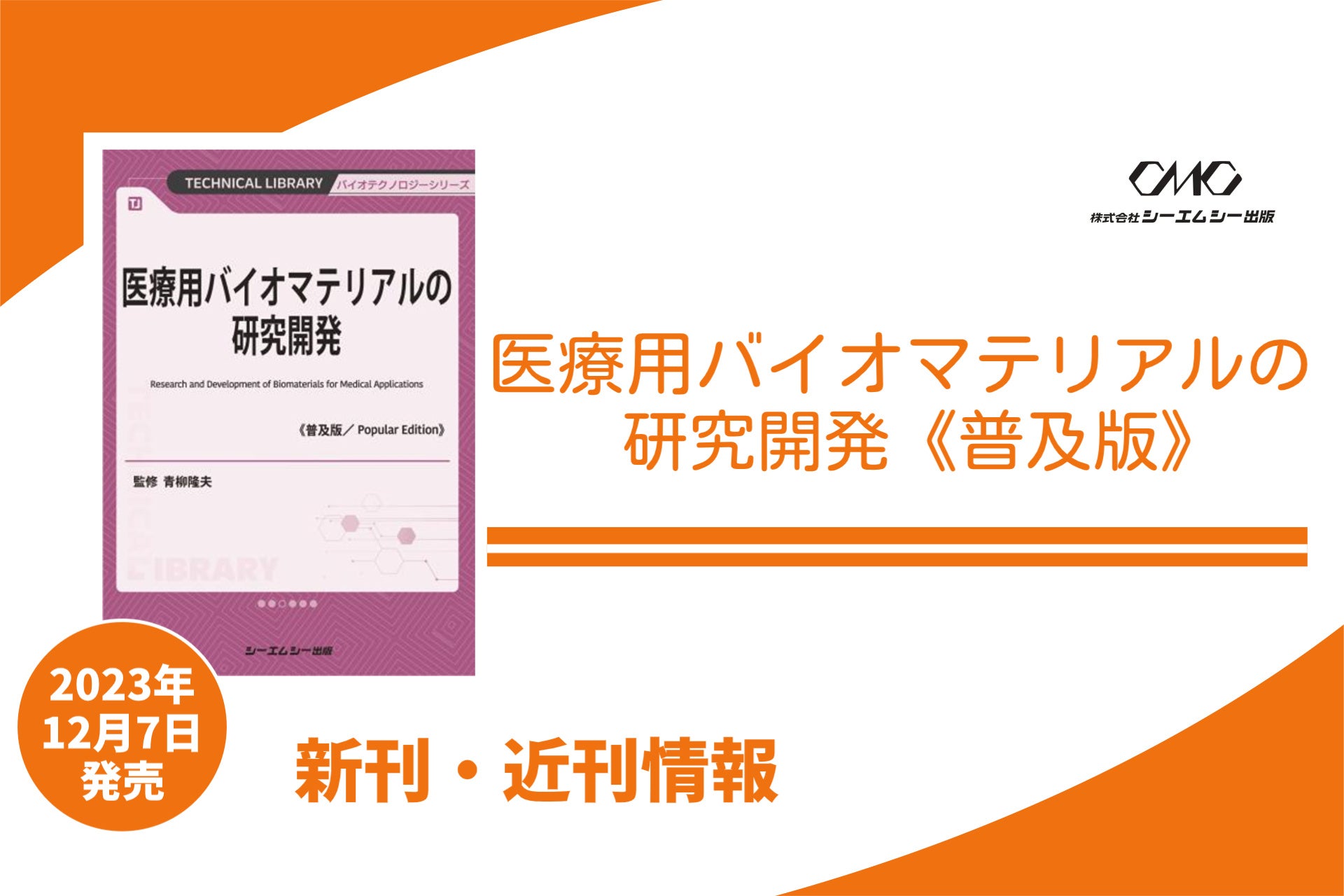 『医療用バイオマテリアルの研究開発《普及版》』(監修:青柳隆夫)2023年12月7日に発売