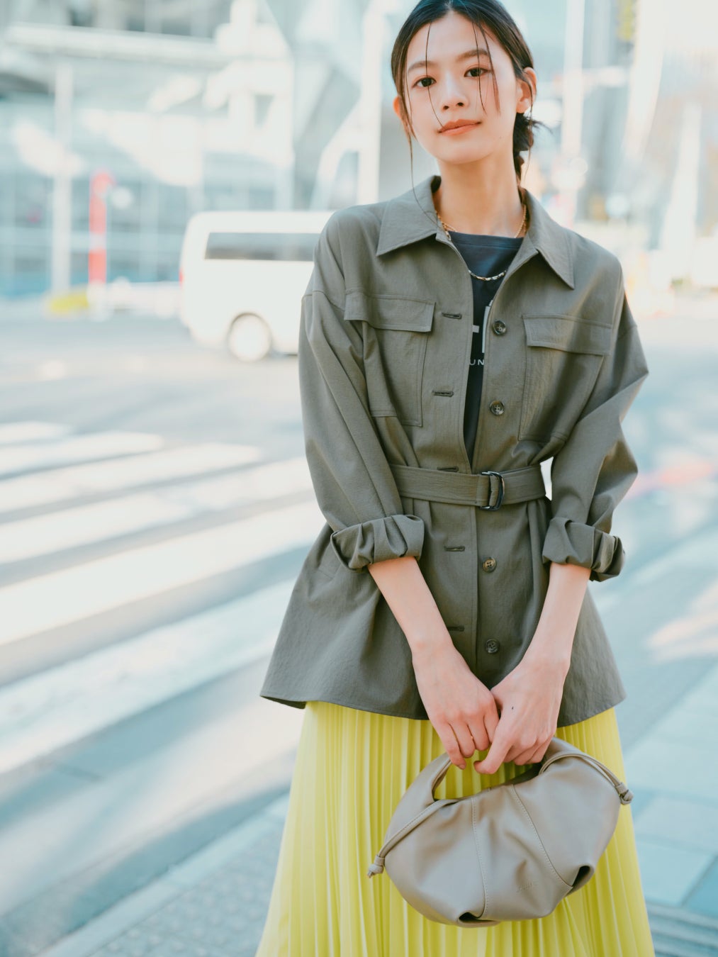 撥水、UVカットで雨の日も紫外線対策にも活躍!洗えて、シワも気になりにくいから、持ち運んでさっと羽織れる。