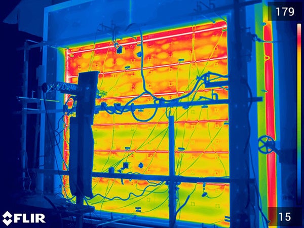 このため、区画壁の開口部は鉄を基材とし、ケイ酸カルシウム板を重ね張りした重い扉を設置し、常時閉鎖するのが一般的であり、大きな開口部が作れないと考えられてきました。