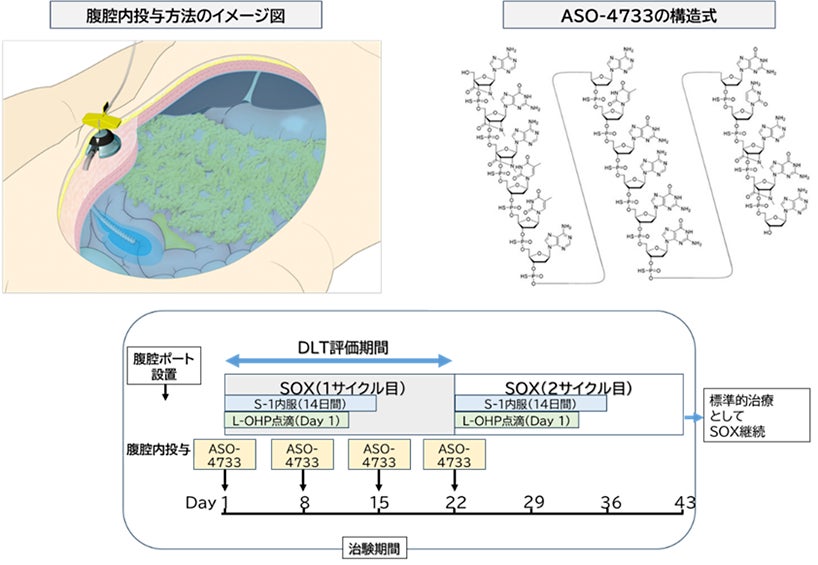 ASO-4733は、独自の製剤設計と腹腔内への直接投与により、高い薬剤濃度を維持し、全身投与では難しい腹膜播種部位への選択的送達を目指す。