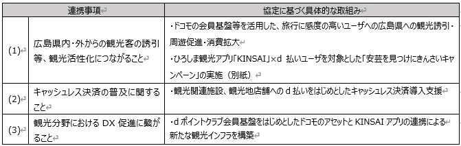 広島県を「何度も訪問してもらえる観光地」にするため、ドコモの会員基盤等の先進技術の活用による新たなビジネスモデルやサービスの創出等に資する取り組みを推進し、県内外へ広島各地の魅力を発信していきます。