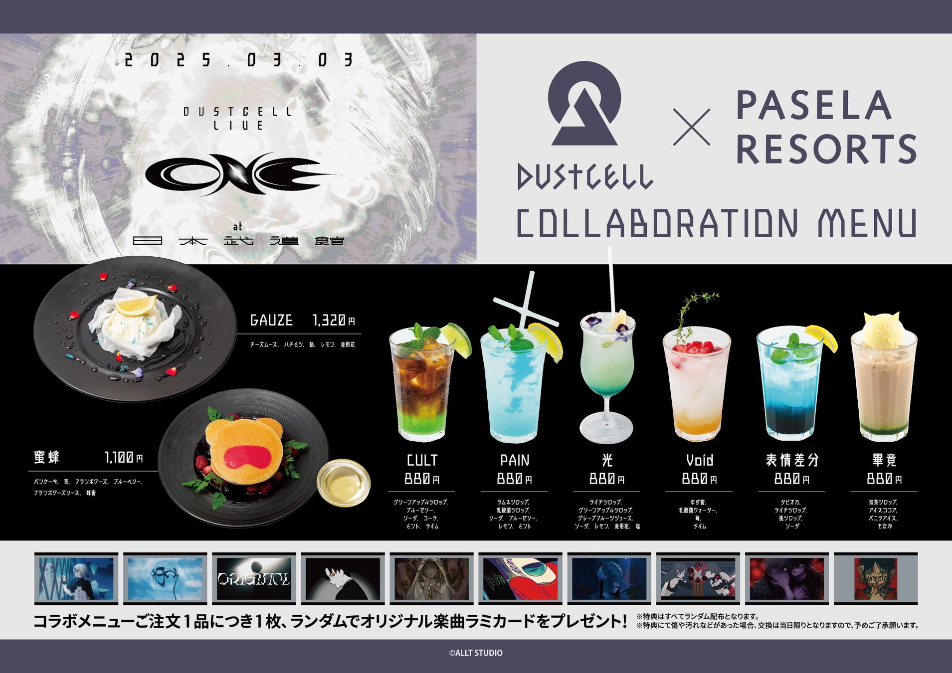 ボーカルのEMAとコンポーザーMisumiによる2人組音楽ユニット『DUSTCELL』の3月3日のLIVE「ONE」at 日本武道館公演を記念いたしまして、楽曲をイメージしたコラボメニュー・オリジナル特典をご用意いたします。