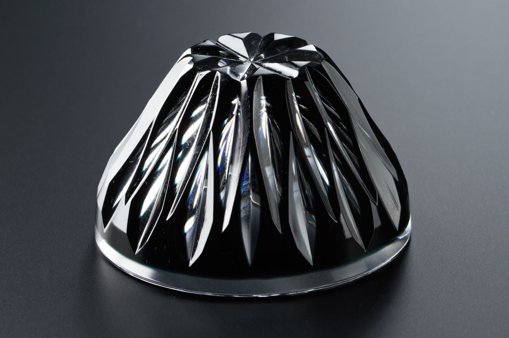 シンプルで大胆なカットを施した盃を逆さに置くと、桜島を見立てた姿になります。