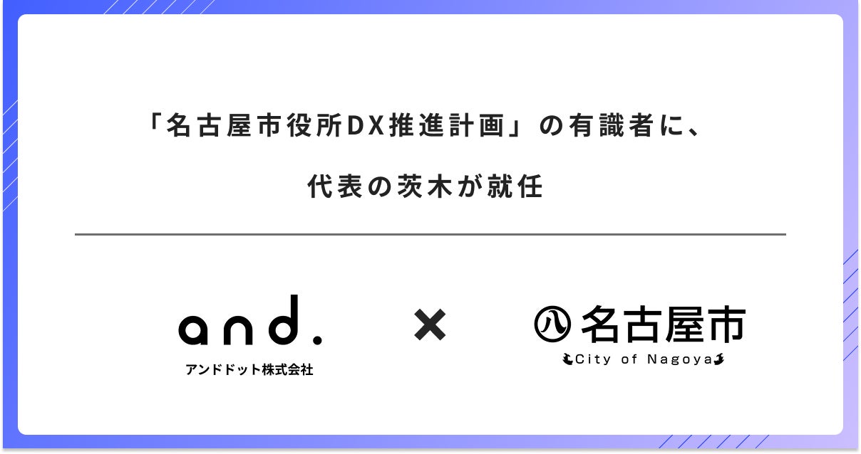 AXプロデュース事業を展開するアンドドット株式会社(本社:東京都渋谷区、代表取締役:茨木 雄太、以下:アンドドット)の代表の茨木は名古屋市が設置する「名古屋市役所DX推進計画有識者懇談会」の委員に就任しました。