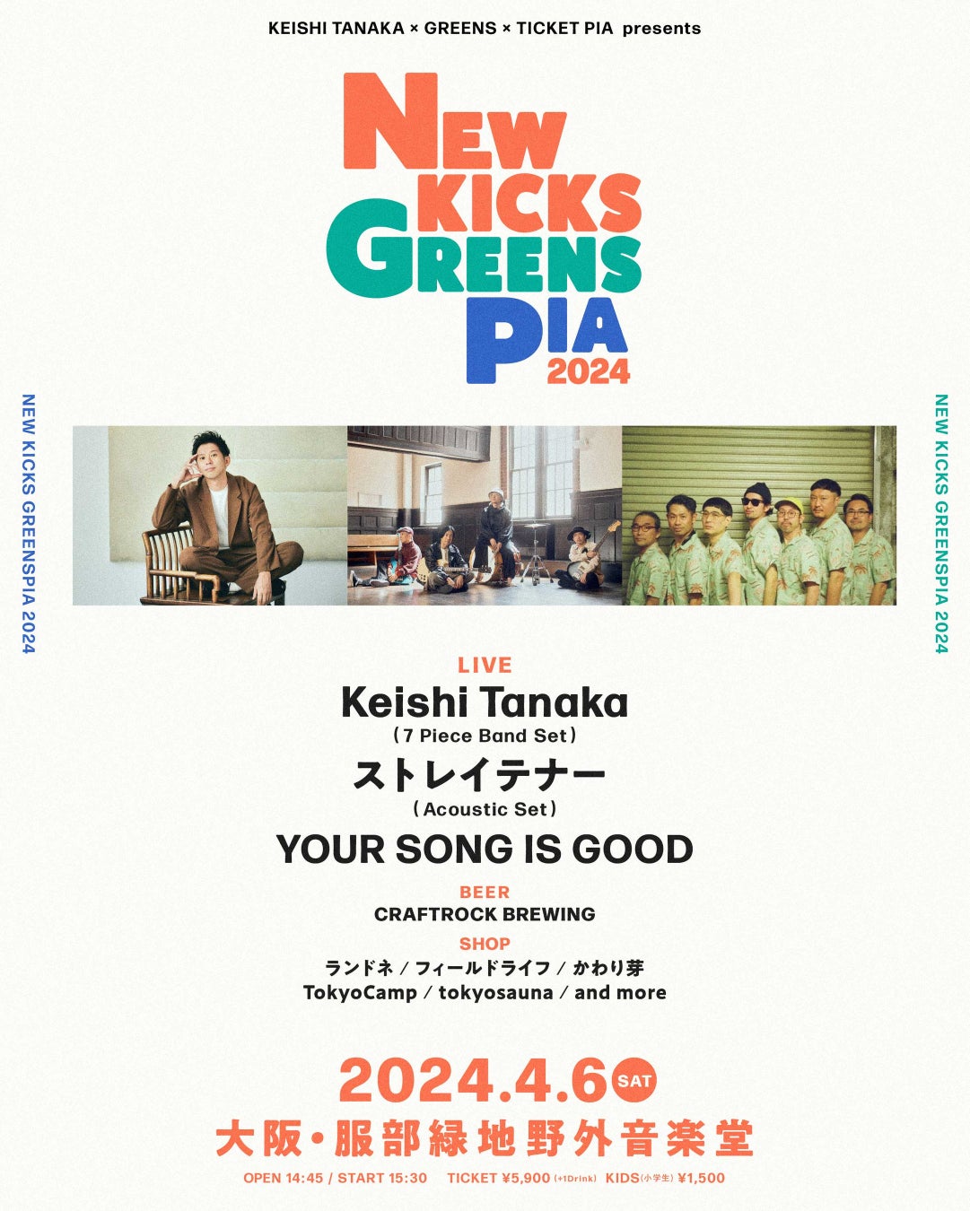 Keishi Tanakaは7人編成によるバンドセットで、共演にYOUR SONG IS GOOD、ストレイテナー(Acoustic Set)が決定。