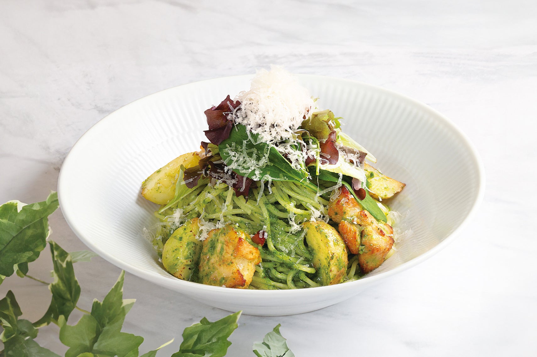 ◆新じゃがいもとローストチキンのジェノベーゼ 1,380円(税込)~