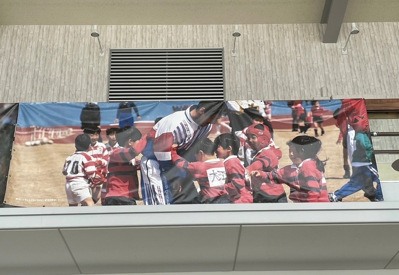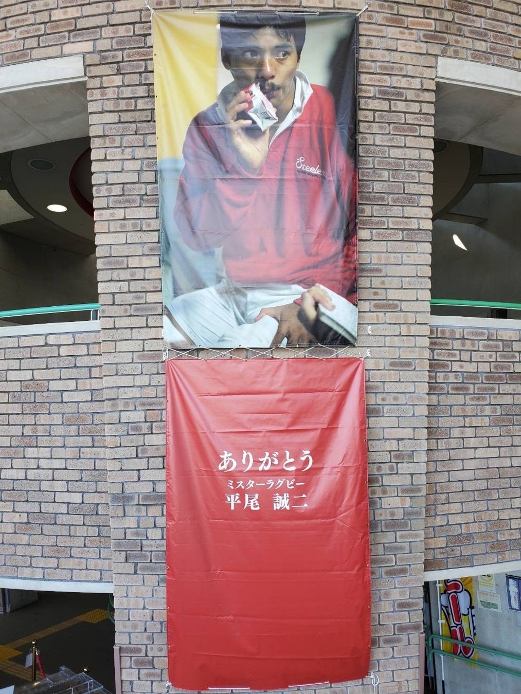 館内には、「ミスター・ラグビー」こと平尾誠二氏のバナー4枚が展示されています。 2019 年ラグビーワールドカップ日本大会開催時、神戸メリケンパークにファンゾーンと平尾 誠二氏の功績を称えるコーナーが設けられました。このバナーは、ファンゾーンが開催された軌跡と平尾誠二氏のレガシーを後世に残そうと、メリケンパーク協議会の呼びかけにより写真家の岡本啓嗣氏や神戸市の協力を得て設置されたものです。
