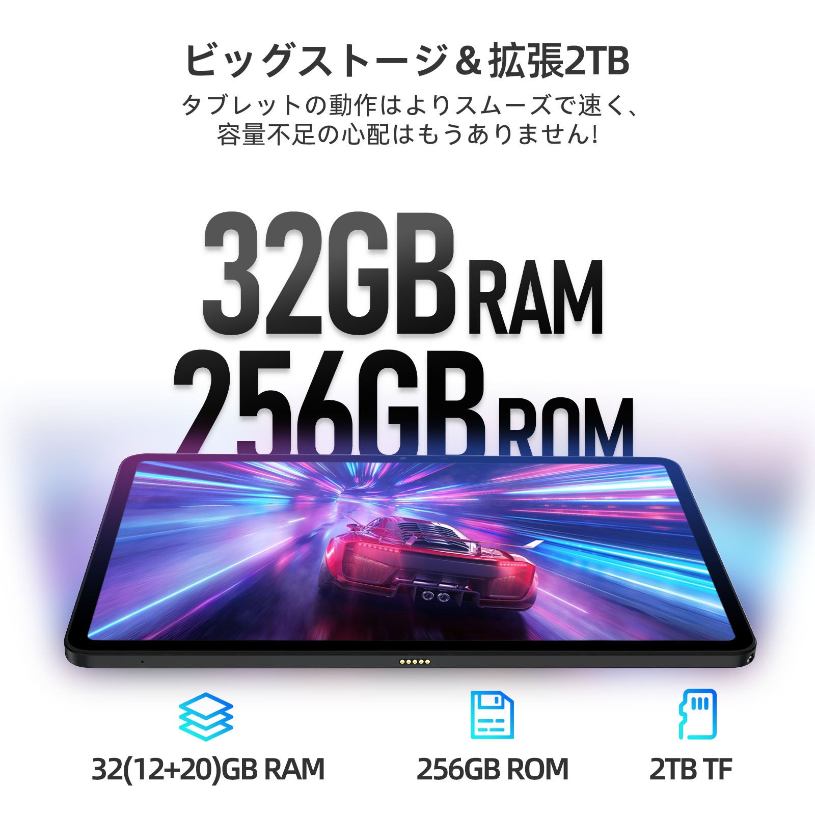 DOOGEE T20Ultra 12インチ タブレットは 32GB(12GB +20GBの仮想メモリ)のメモリは高速な応答速度を提供し、12GBの物理メモリに加えて、20GBの仮想メモリが搭載されているため、シームレスなマルチタスキングが可能です。メモリ不足による動作の遅さやフリーズといった問題を心配する必要はありません。大容量のメモリは、高速データ処理と効率的なパフォーマンスを実現するために最適です。256GBのストレージは広々とした容量を提供し、写真、ビデオ、音楽、ファイルなど、すべてのデータを一括管理できます。