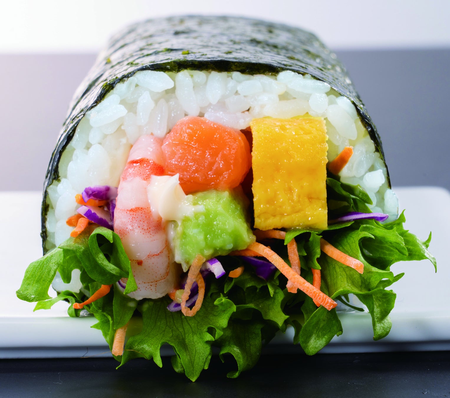 アボカドと相性の良い海老とサーモンに加え、彩り豊かな野菜をたっぷりと使用したサラダロールです。