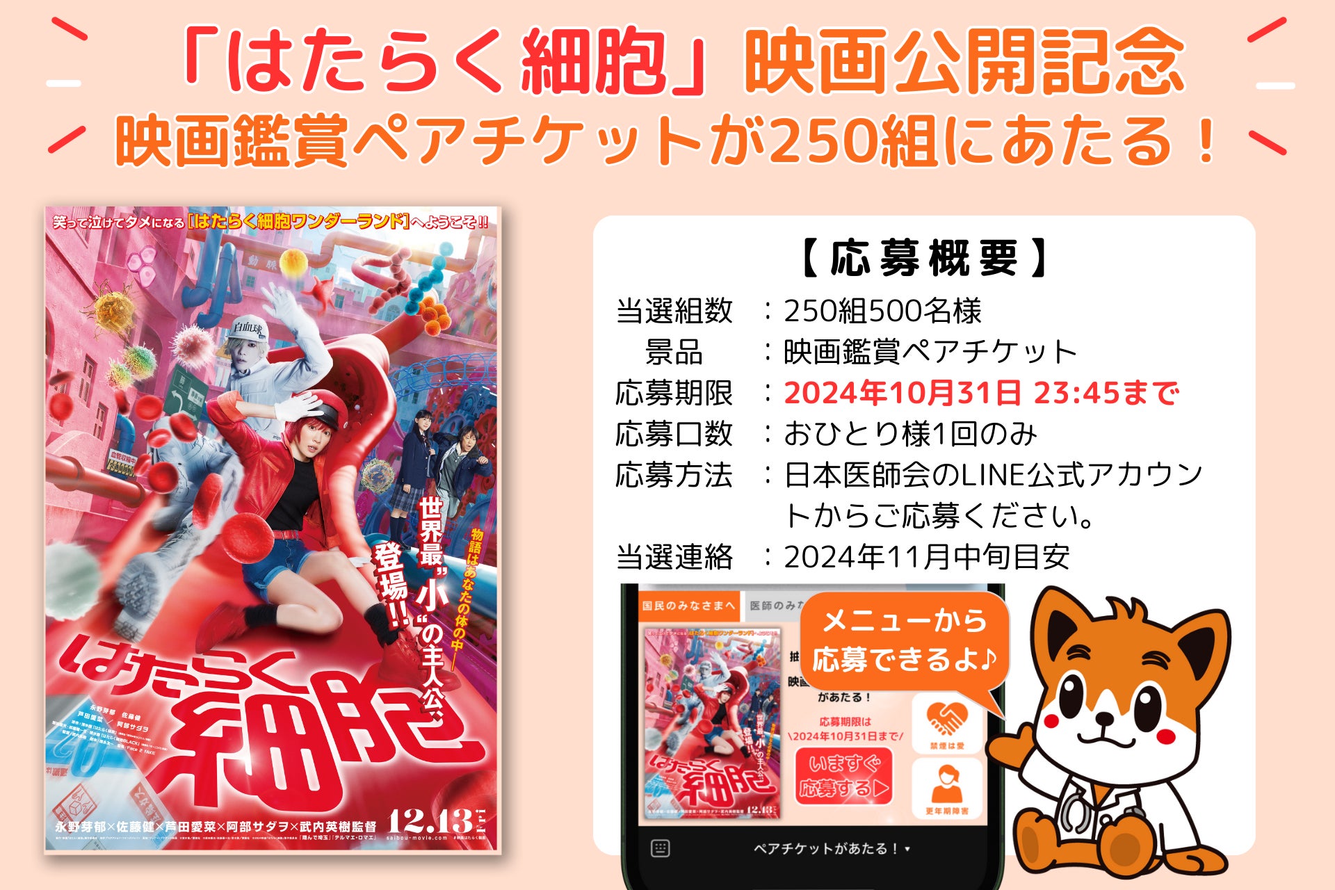 【日本医師会】映画「はたらく細胞」鑑賞ペアチケットプレゼントキャンペーン実施中!!