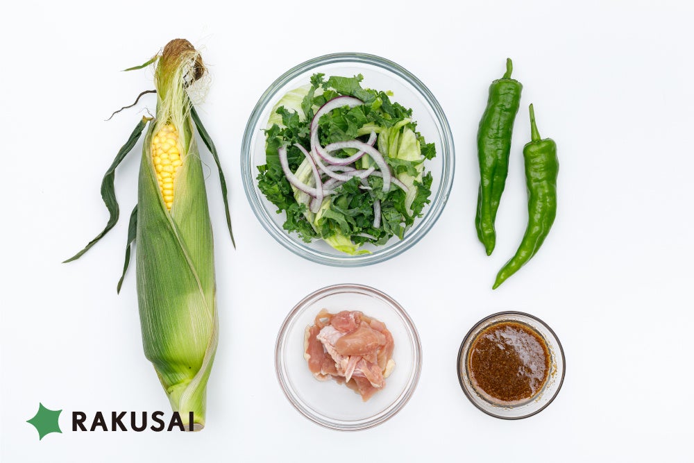 本日7月7日(月)からは、昨年も大好評を博した夏限定ミールキット「とうもろこしと土佐甘とうの焼き鳥サラダ」が販売スタート!調理時間はたったの15分!夏が旬の甘いとうもろこしを丸々一本贅沢に使用し、和風ドレッシングが絡んだ焼き鳥と土佐甘とうで、ボリューム感のある一品に仕上げました。