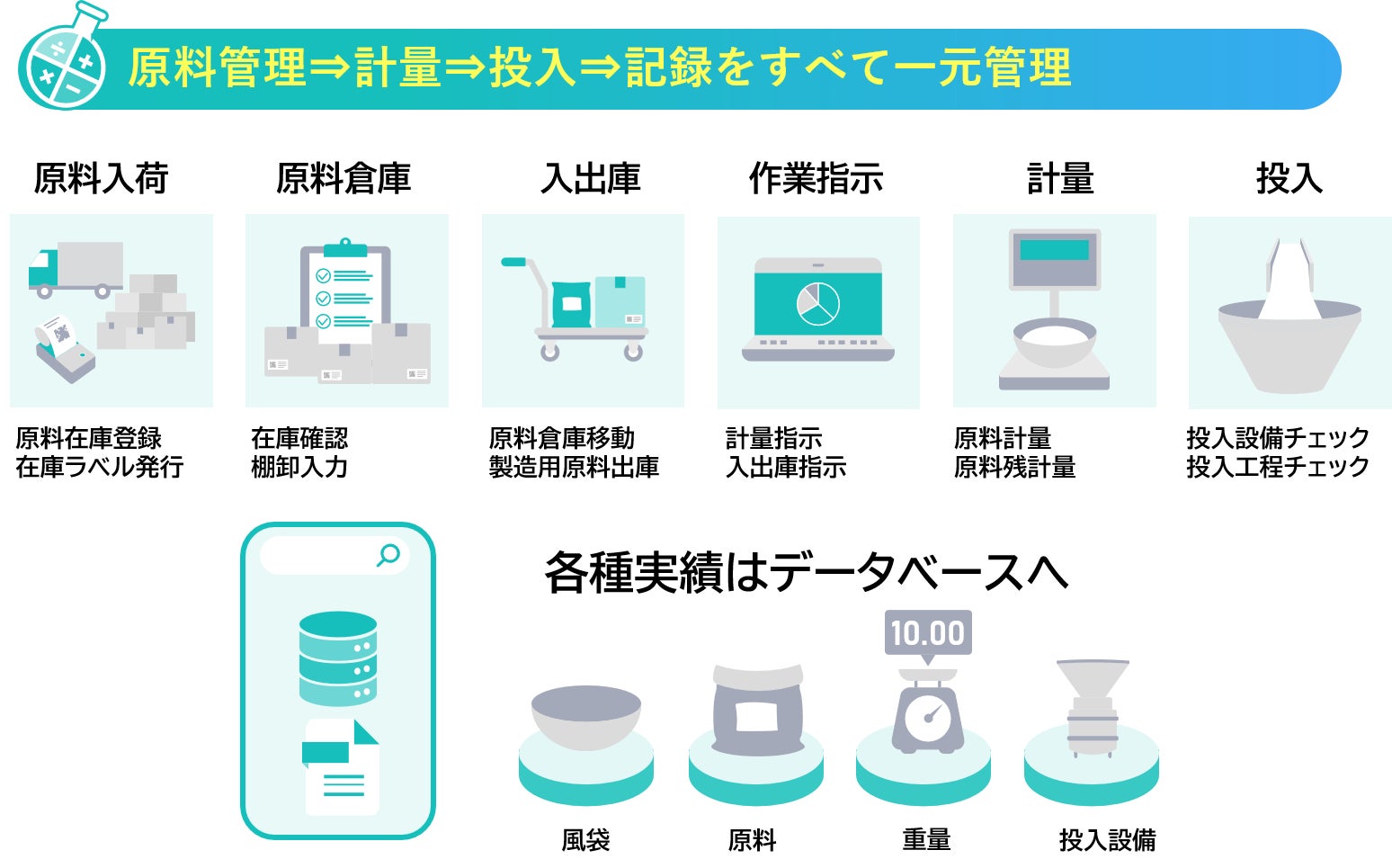 ・計量・投入・記録まで一括管理、リアルタイム進行把握