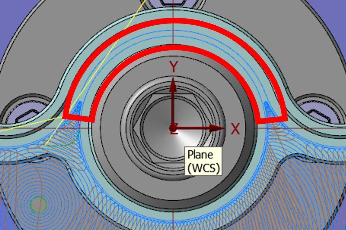 従来は、荒取りと仕上げをそれぞれ別のオペレーションで作成する必要がありましたが、Mastercam 2025では、これらを一体化することで視認性が向上し、パス作成の手間を大幅に削減することができるようになりました。さらに、「工具損傷最小化」オプションを有効にすることで、荒取り工程で加工していない箇所に仕上げパスが出力されないように設定が可能です。これにより、工具に無駄な負荷をかけることを防ぎ、摩耗や損傷を最小限に抑えることができます。