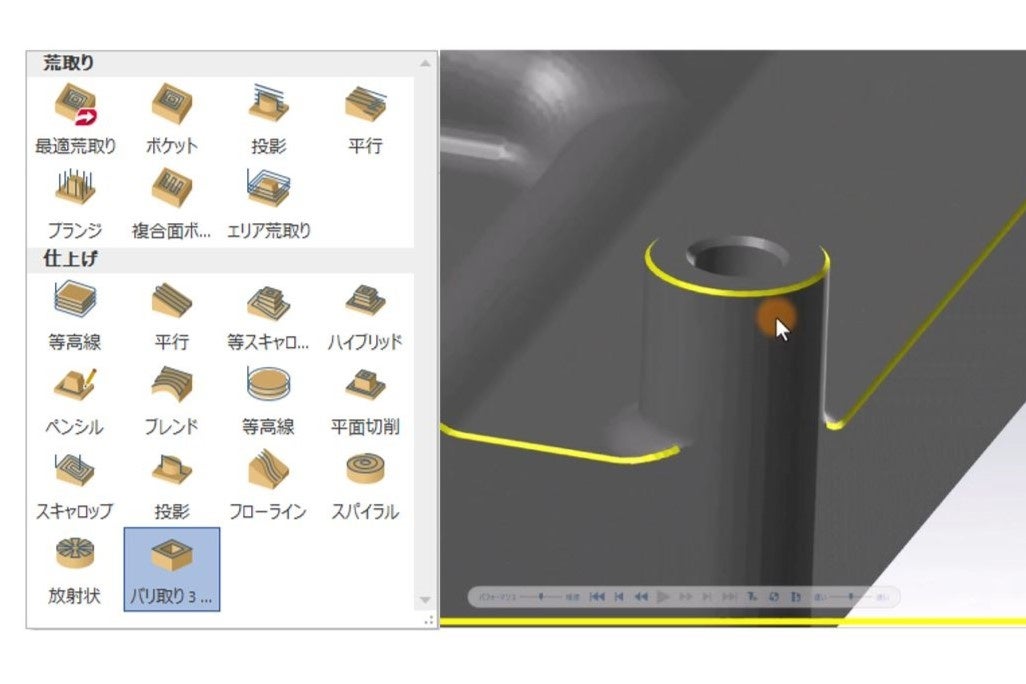①3軸バリ取り機能(有償オプション)