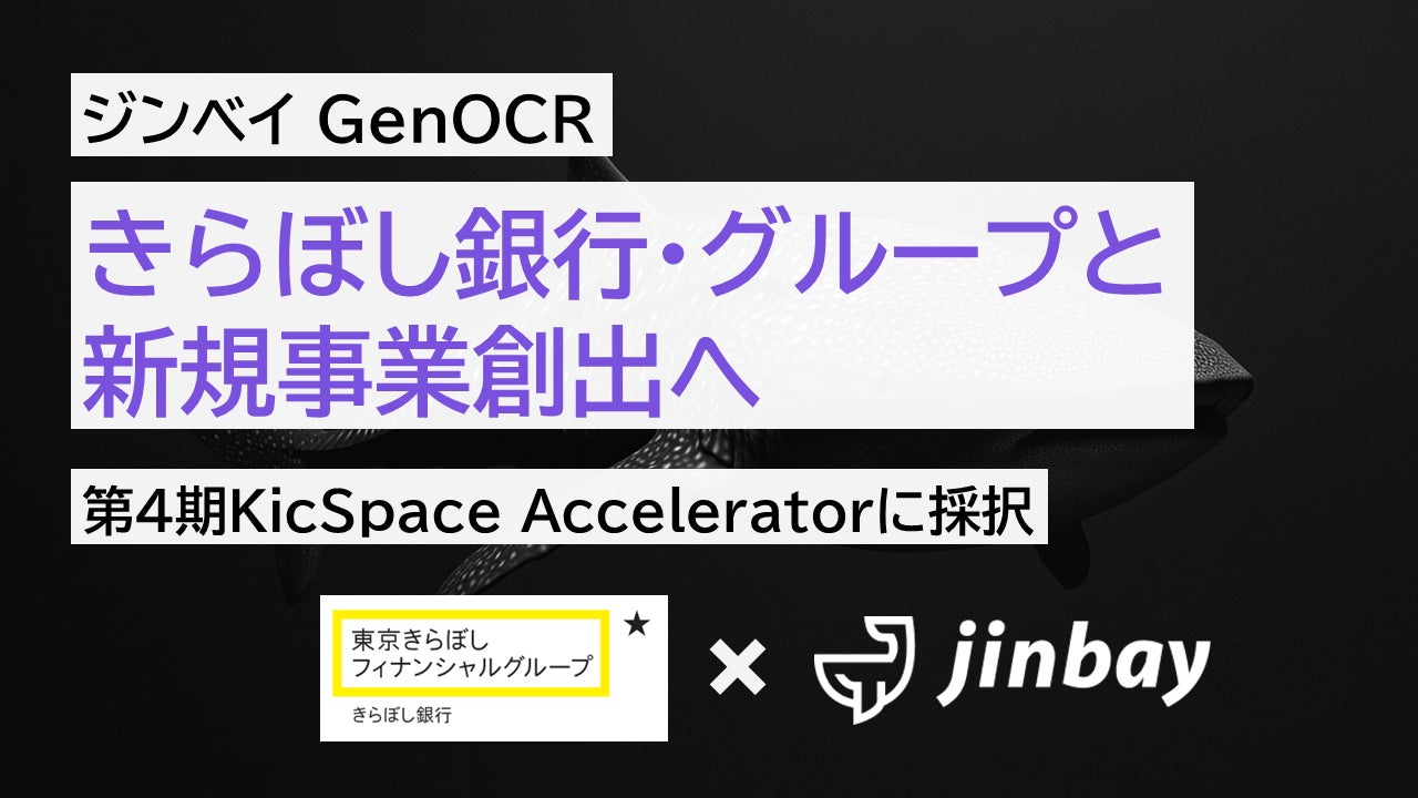 ジンベイ株式会社(本社:神奈川県横浜市、代表取締役:上田英介)は、この度きらぼし銀行が主催するアクセラレーションプログラム「KicSpace Accelerator」第4期に採択されました。