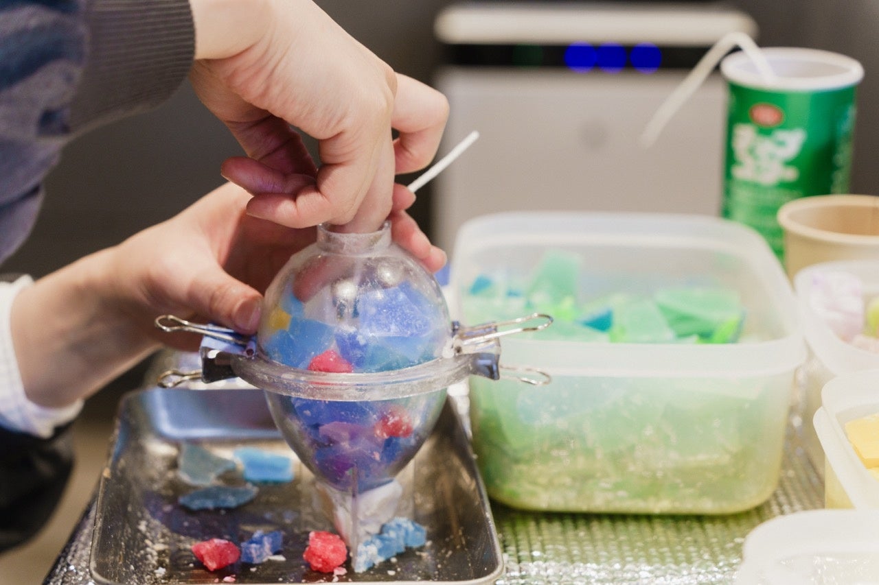 Tシャツやエコバッグ、てぬぐいなどに希望の型を染めたり、様々な形や色の中からオリジナルキャンドルを作ったりと、お子さんから大人まで幅広い層の方が参加してくださりました。出来上がったものはどれもかわいくて「使うのがもったいないな〜」という声も。