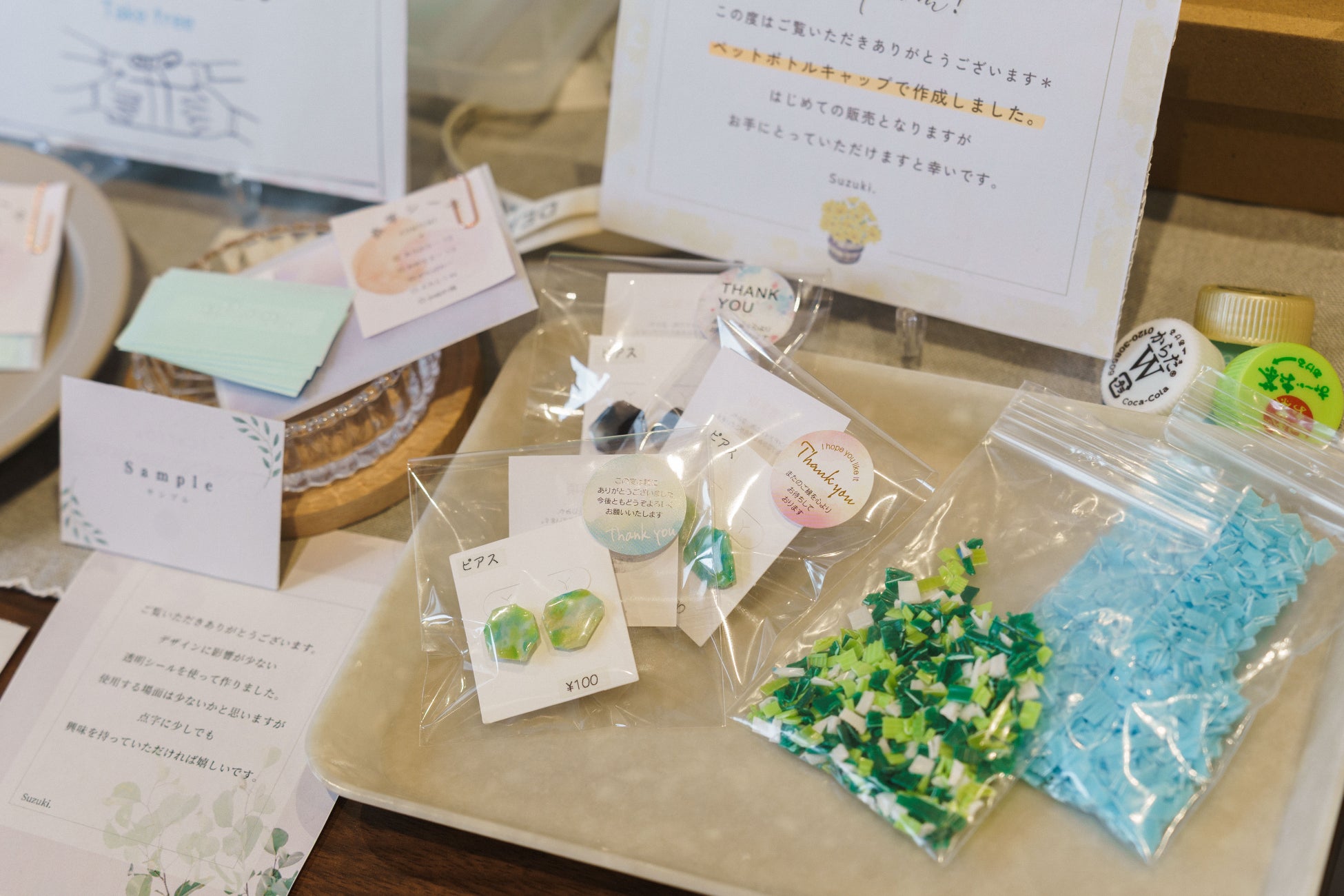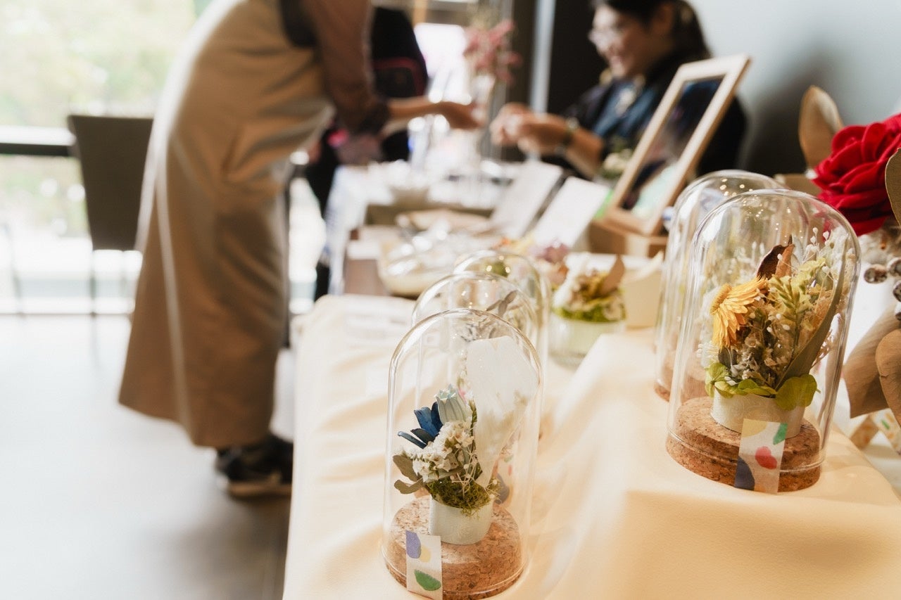 店内にはアクセサリーやフラワーアレンジメント、イラスト、ステッカーなど様々な作品が並び、来場した方々は、作家さんとお話ししたりカフェスペースで寛ぎながら作品にふれました。