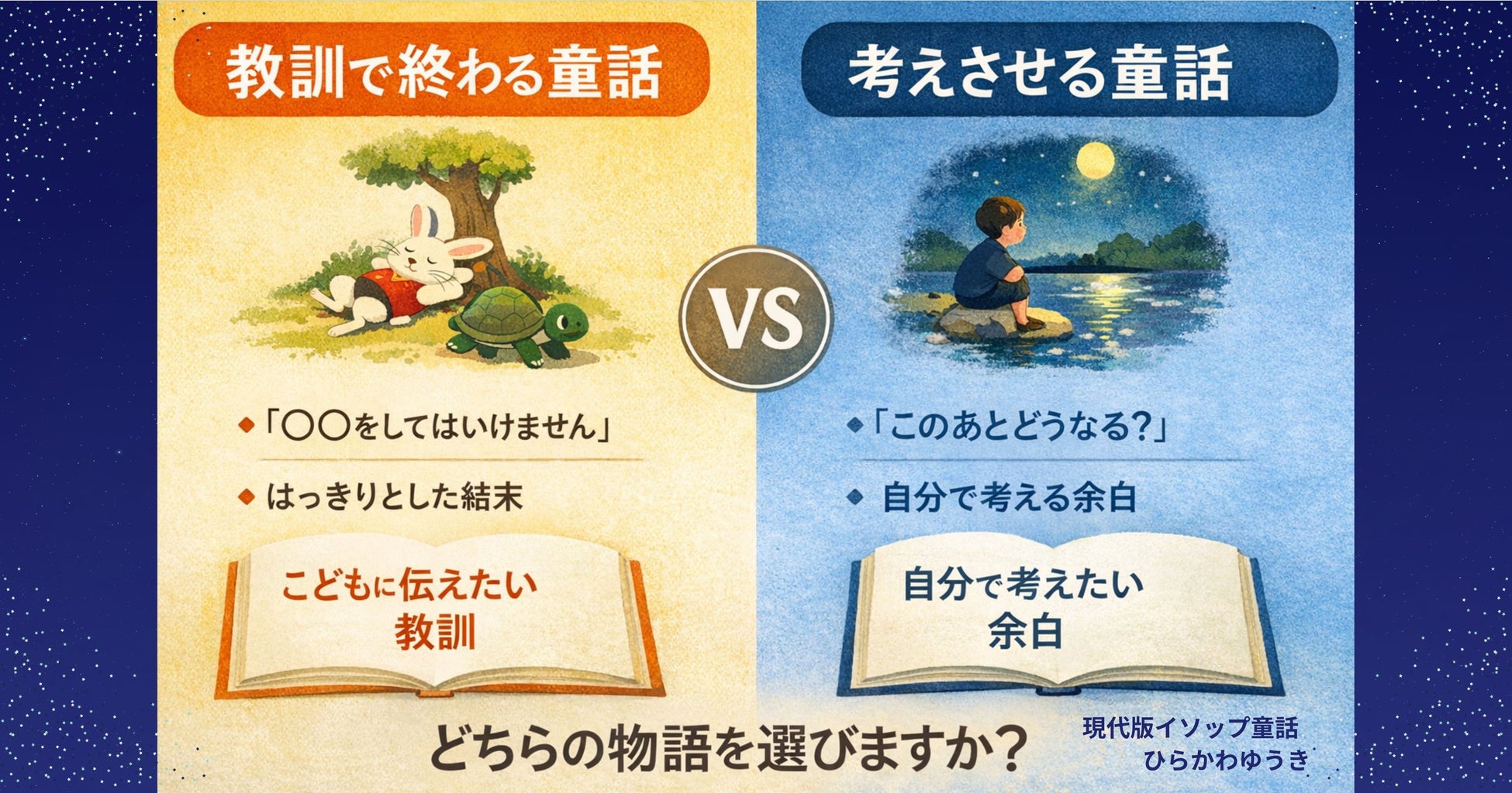 多くの人は、童話とは「大切なことを教えてくれる物語」だと考えている。しかし実際には、童話には大きく分けて二つのタイプが存在する。明確な教訓を伝える物語と、答えを示さず読者に考えさせる物語だ。