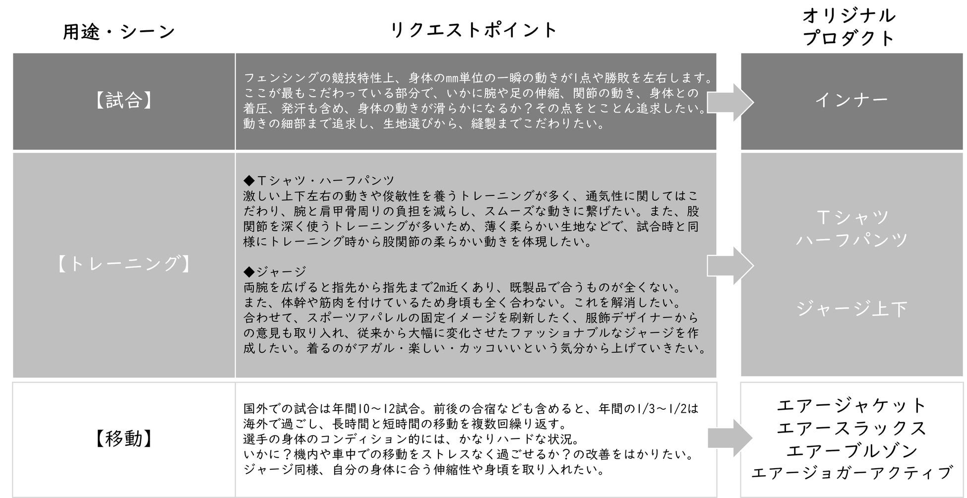 工場とアスリートが直接繋がることで、アスリートが抱える悩みや課題、競技環境・競技特性が反映・解決された完全オリジナルのスポーツウェアの実現へ。