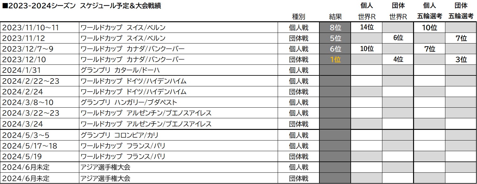 ●見延和靖選手およびフェンシング男子エペ日本代表の今後の大会スケジュール予定