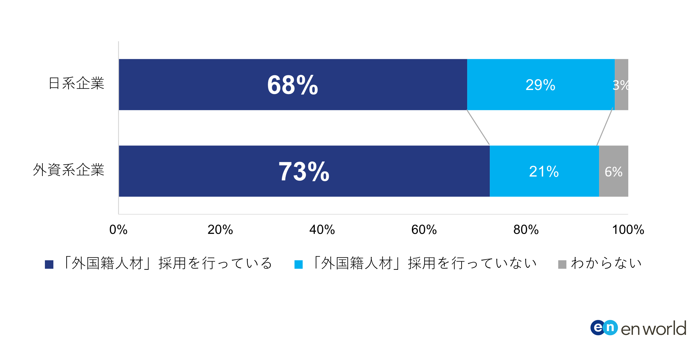 外国籍人材採用、日系も約7割実施―効果実感は日系24%、外資系49%で2倍の差