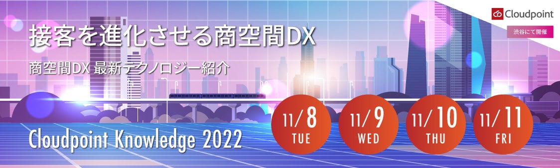 株式会社クラウドポイント(本社:東京都渋谷区、代表取締役:三浦 嚴嗣、以下、クラウドポイント)は、本社にて内覧会を開催します。ショッピングモールや飲食店といった「商空間のDX」をテーマに、デジタル機器や接客体験向上ソリューションを複数ご紹介いたします。開催期間は東京本社が11月8日(火)~11月11日(金)です。感染症対策のため完全予約制となり、本日より事前予約を開始いたします。