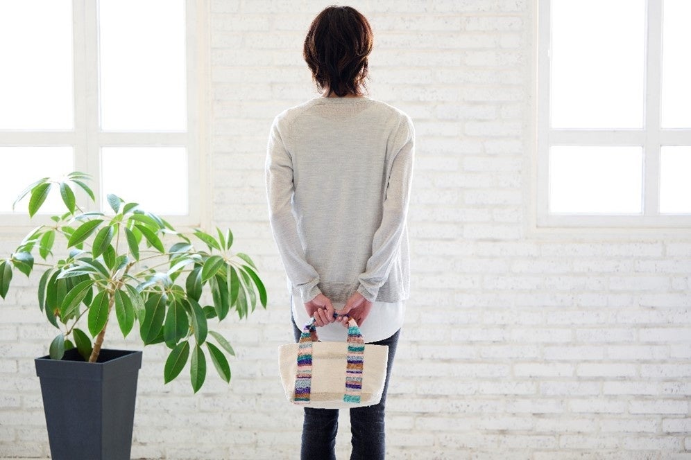 今回先行販売するトートバッグは、タイのスラムで暮らす女性たちと、東京都国分寺市にある福祉施設AnnBeeのコラボレーションから生まれました。バッグ本体をタイのスラムで暮らす女性たちが製作し、福祉施設の障害を持つ人たちが裂き織りでつくった持ち手を組み合わせたトートバッグは、ひとつひとつ持ち手の雰囲気が異なる一点物です。