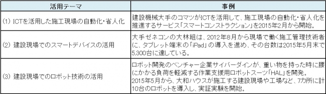 【図表1 建設現場におけるICT・ロボット技術の活用事例】